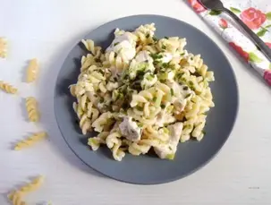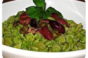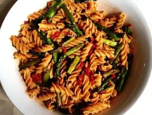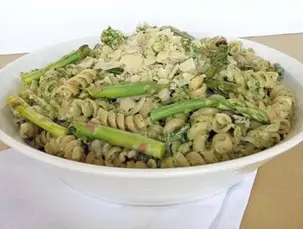 Fusilli con Pasta Cremosa de Rúcula y Verduras Asadas